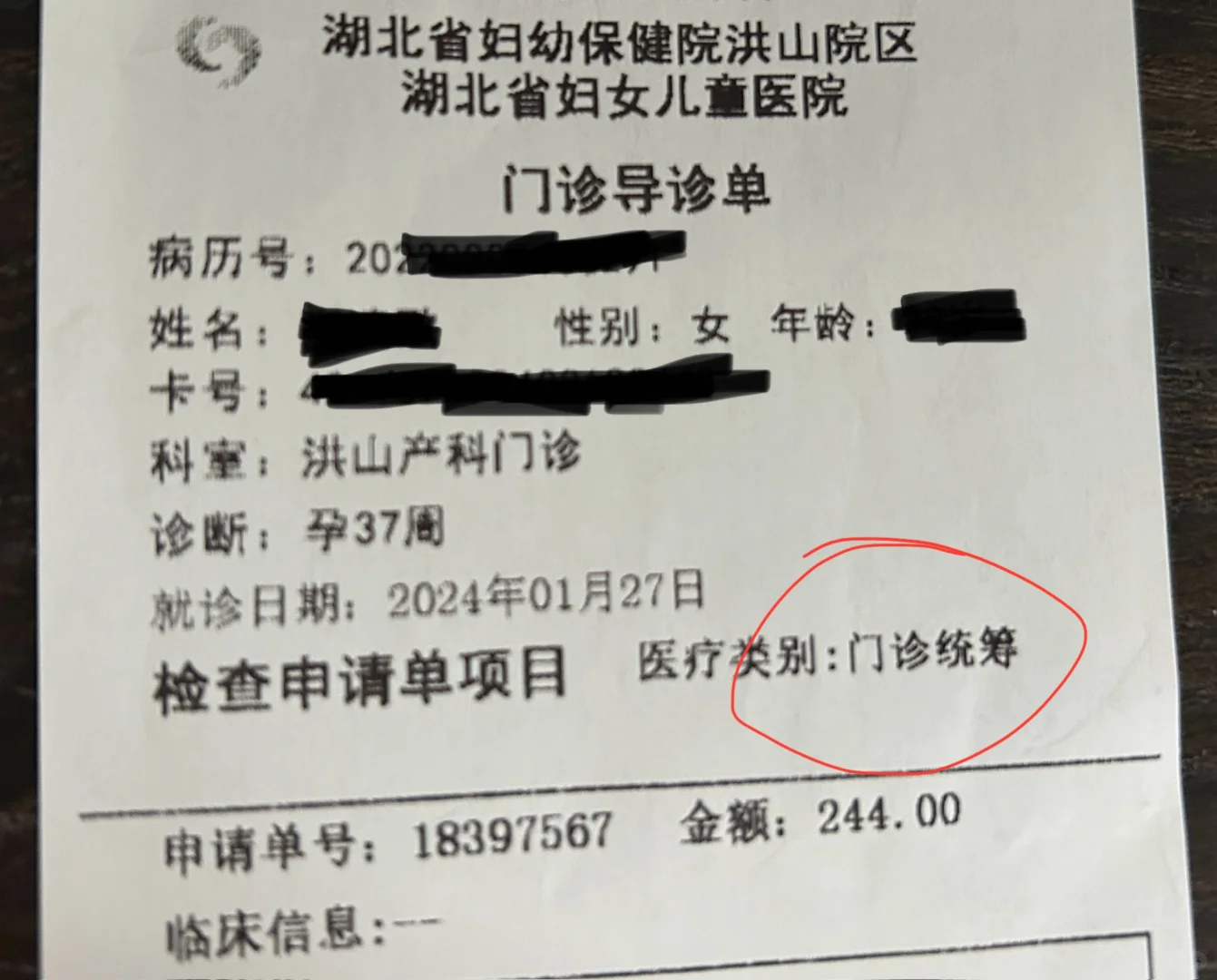1.31街道口开的抽血的检查单子上是生育门诊