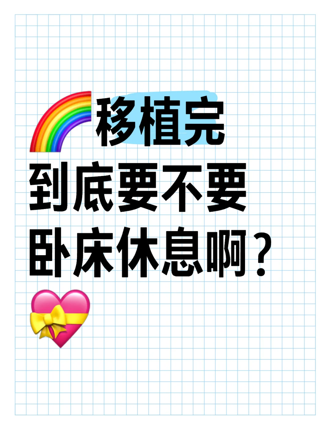 首先,我们来了解一下卧床休息的目的🤔。一般来说,卧床休息是为了让身体有更多的时间和能量来恢复和适应移植后的变化💪。但是,并不是所有人都需要卧床休息,也不是卧床时间越长越好哦😟!