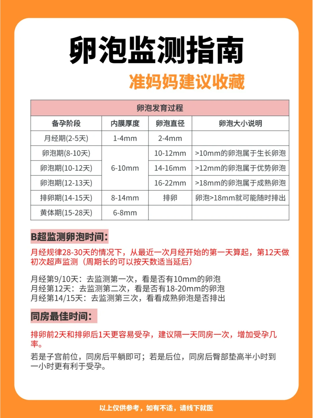 3️⃣ 月经第12天:去监测第二次,看是否有18-20mm的卵泡