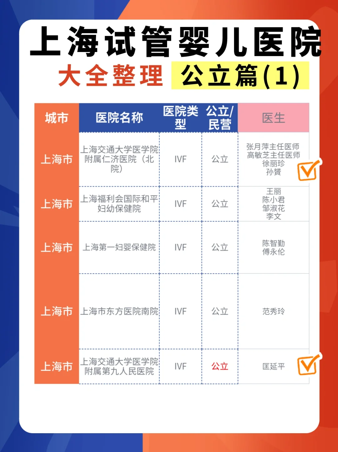 最后我干脆直接整理了上海能做试管的、且周期数最多的前18家医院、以及每家医院,姐妹们挂号最多的主治医生(排名不分先后)