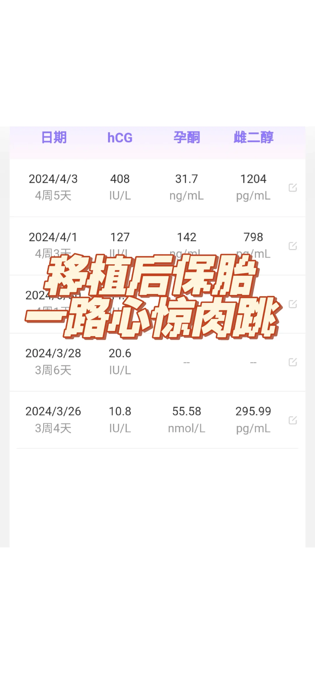,得亏今天翻倍还算是给力,跃升到408了,悬着的心暂且稍稍放下,不过接下来没两天查翻倍还真是一次心态考验,有种再上高三连续模拟考的感觉,祝愿姐们们少点波折,翻倍顺利。#科学备孕 #怀孕初期 #接一切好孕 #备孕 #怀孕备孕接好孕 #hcg翻倍 #hcg #试管移植 #囊胚移植 #试管之路 #怀孕了 #接好孕蛋白➕绒促今天反而降了